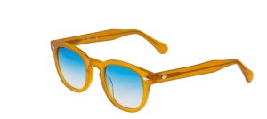 - Honey-yellow or tortoiseshell frames paired with sleek bluish gradient lenses